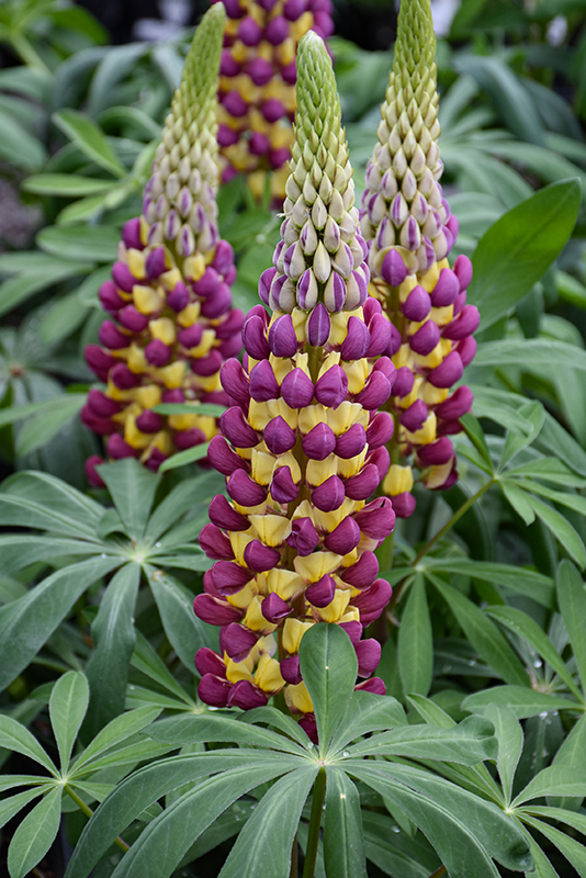 Westcountry™ Manhattan Lights Lupine features bold spikes of plum purple pea-like flowers with yellow overtones rising above the foliage from late spring to early summer. The flowers are excellent for cutting. Its palmate leaves remain emerald green in color throughout the season.