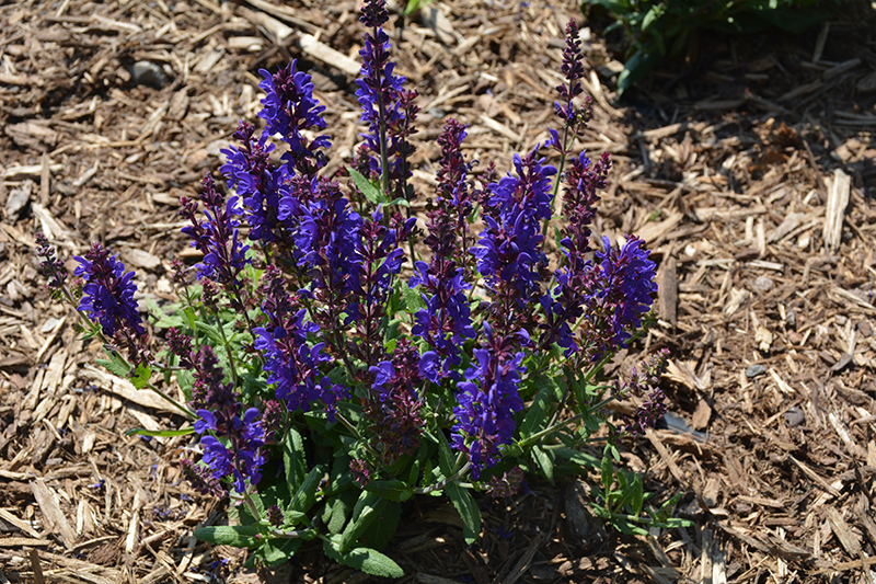 Dark Matter™ Meadow Sage will grow to be about 12 inches tall at maturity extending to 18 inches tall with the flowers, with a spread of 20 inches. When grown in masses or used as a bedding plant, individual plants should be spaced approximately 18 inches apart. It grows at a medium rate, and under ideal conditions can be expected to live for approximately 5 years. As an herbaceous perennial, this plant will usually die back to the crown each winter, and will regrow from the base each spring. Be careful not to disturb the crown in late winter when it may not be readily seen!