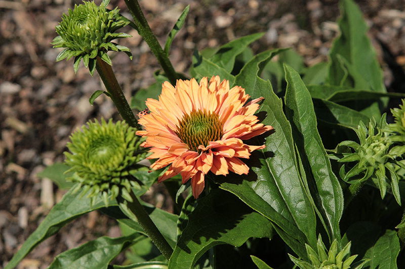 An outstanding series with eye catching color; strong and bushy habit that is ideal for sunny borders and mixed containers; large and fragrant flowers have striking orange-peach petals, surrounding a green cone; deadhead spent blooms