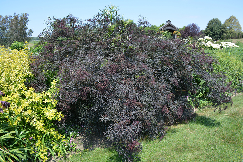 Black Lace® Elder will grow to be about 10 feet tall at maturity, with a spread of 8 feet. It has a low canopy with a typical clearance of 1 foot from the ground, and is suitable for planting under power lines. It grows at a fast rate, and under ideal conditions can be expected to live for approximately 30 years.