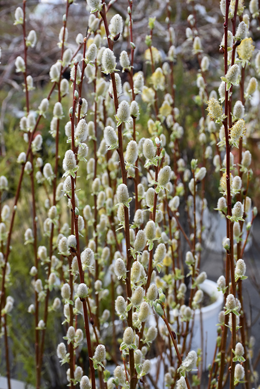 Our own native pussy willow, featuring soft, fuzzy catkins in late winter, one of the first plants to bloom in northern climates, heralding the arrival of spring; upright and spreading habit, forms a small multi-stemmed tree; quite versatile and hardy