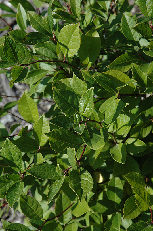 Jim Dandy Winterberry has dark green deciduous foliage on a plant with an oval habit of growth. The pointy leaves do not develop any appreciable fall color.
