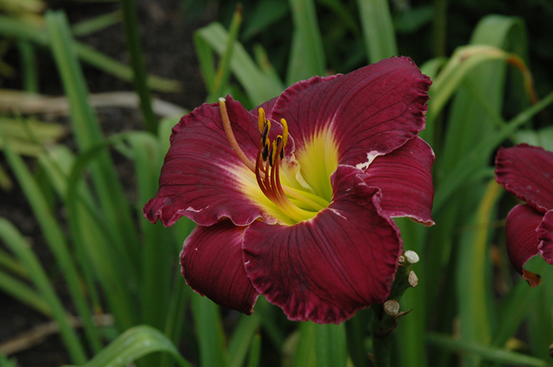 Bela Lugosi Daylily will grow to be about 30 inches tall at maturity, with a spread of 3 feet. When grown in masses or used as a bedding plant, individual plants should be spaced approximately 28 inches apart. It grows at a medium rate, and under ideal conditions can be expected to live for approximately 7 years. As an herbaceous perennial, this plant will usually die back to the crown each winter, and will regrow from the base each spring. Be careful not to disturb the crown in late winter when it may not be readily seen!