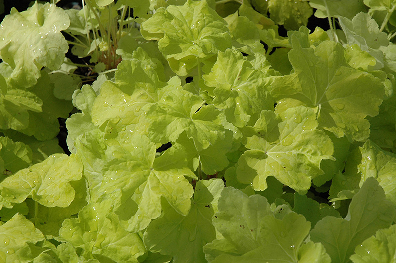 Citronelle Coral Bells will grow to be only 6 inches tall at maturity extending to 12 inches tall with the flowers, with a spread of 15 inches. When grown in masses or used as a bedding plant, individual plants should be spaced approximately 12 inches apart. Its foliage tends to remain low and dense right to the ground. It grows at a medium rate, and under ideal conditions can be expected to live for approximately 10 years. As an evegreen perennial, this plant will typically keep its form and foliage year-round.