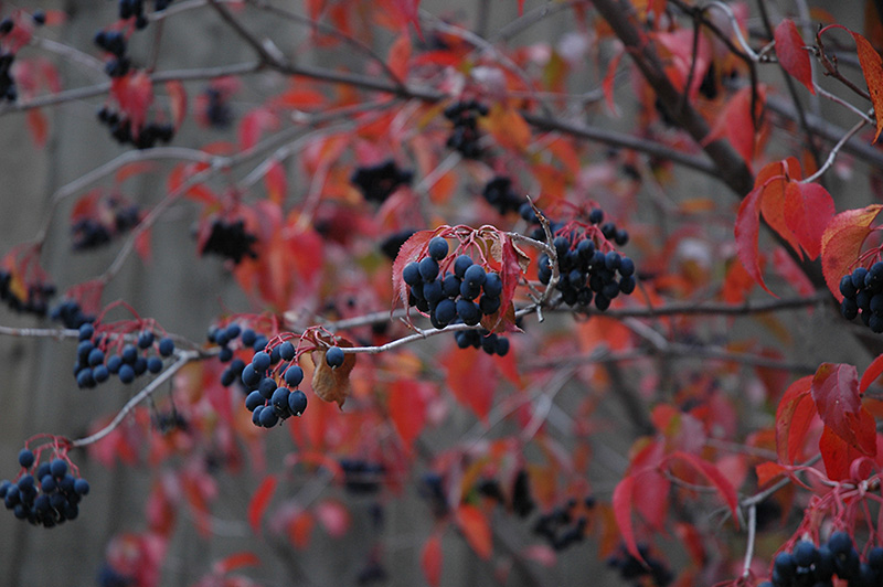 A magnificent yet underutilized native shrub with many endearing qualities; large clusters of creamy white flowers in spring, showy blue fruit in fall and reliable fall color; an upright spreading plant, hardy and adaptable, can be grown as a small tree