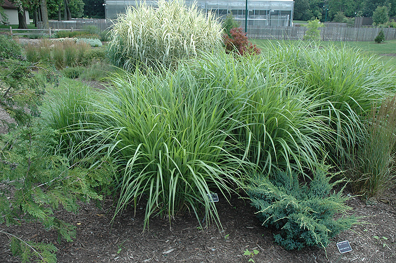 Silberfeder Maiden Grass is an herbaceous perennial grass with an upright spreading habit of growth. Its medium texture blends into the garden, but can always be balanced by a couple of finer or coarser plants for an effective composition.