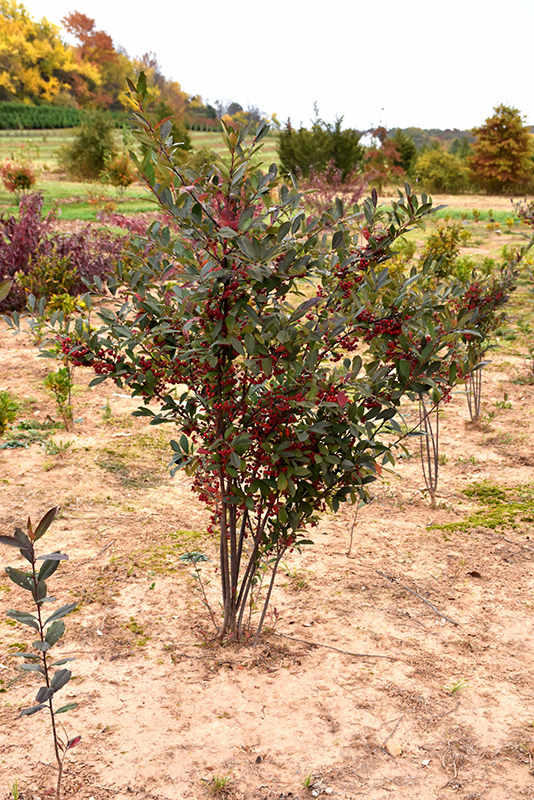 Brilliantissima Red Chokeberry is primarily grown for its highly ornamental fruit. It features an abundance of magnificent red berries from early fall to late winter. It features showy panicles of white flowers with brick red anthers at the ends of the branches in mid spring. It has forest green deciduous foliage. The oval leaves turn an outstanding scarlet in the fall.