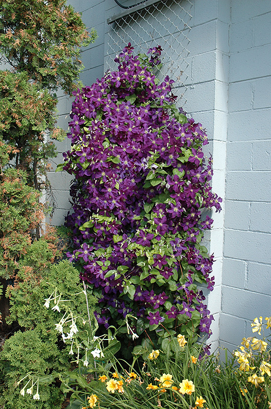 A notable improvement over the enormously popular Jackman clematis which is more vigorous and produces even larger, richer deep purple-blue flowers across the entire summer and into fall; a tough and hardy plant for every gardener