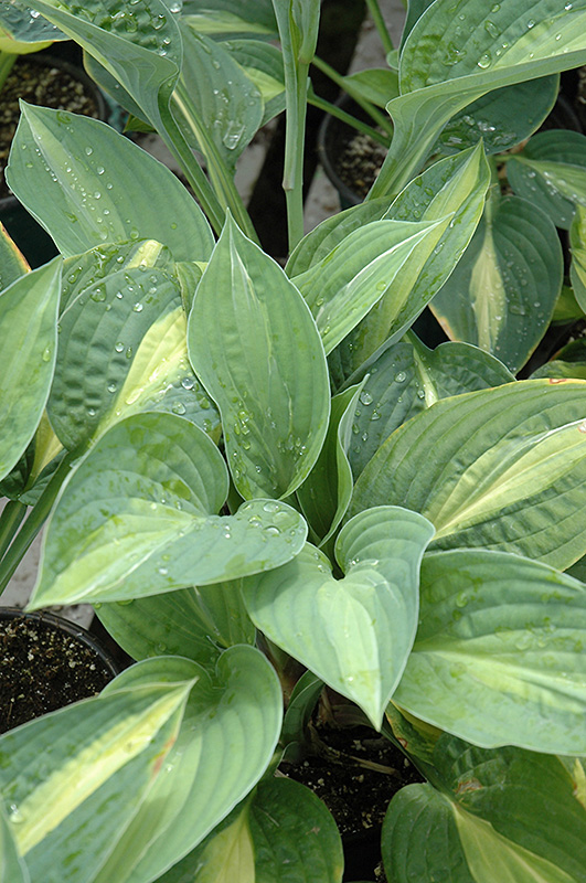 Striptease Hosta will grow to be about 18 inches tall at maturity extending to 28 inches tall with the flowers, with a spread of 3 feet. When grown in masses or used as a bedding plant, individual plants should be spaced approximately 30 inches apart. Its foliage tends to remain dense right to the ground, not requiring facer plants in front. It grows at a fast rate, and under ideal conditions can be expected to live for approximately 10 years. As an herbaceous perennial, this plant will usually die back to the crown each winter, and will regrow from the base each spring. Be careful not to disturb the crown in late winter when it may not be readily seen!