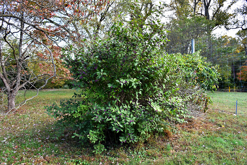 Profusion Beautyberry will grow to be about 8 feet tall at maturity, with a spread of 8 feet. It tends to fill out right to the ground and therefore doesn't necessarily require facer plants in front, and is suitable for planting under power lines. It grows at a fast rate, and under ideal conditions can be expected to live for approximately 20 years.