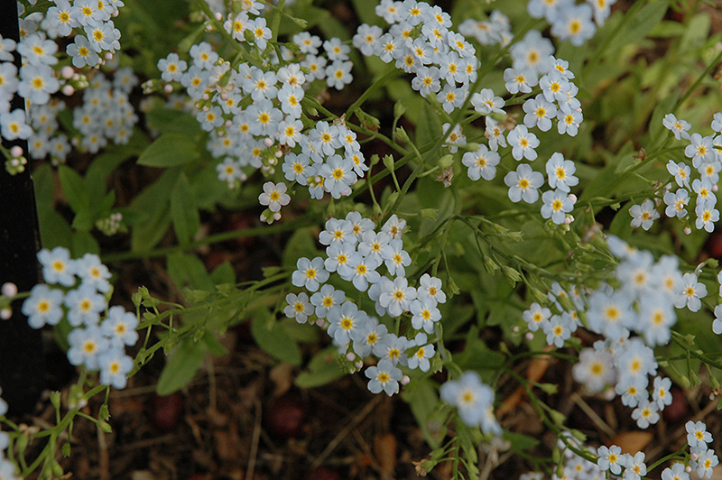 Everblooming Forget-Me-Not will grow to be about 14 inches tall at maturity, with a spread of 12 inches. When grown in masses or used as a bedding plant, individual plants should be spaced approximately 10 inches apart. Its foliage tends to remain dense right to the ground, not requiring facer plants in front. It grows at a fast rate, and under ideal conditions can be expected to live for approximately 5 years. As an herbaceous perennial, this plant will usually die back to the crown each winter, and will regrow from the base each spring. Be careful not to disturb the crown in late winter when it may not be readily seen! As this plant tends to go dormant in summer, it is best interplanted with late-season bloomers to hide the dying foliage.