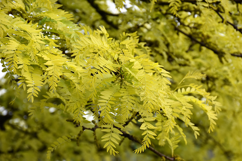 A very popular shade tree, valued for its delicate, ferny appearance which casts a dappled shade below; foliage emerges a brilliant yellow, fading to light green; broad spreading habit of growth, seedless, very tolerant of adverse growing conditions