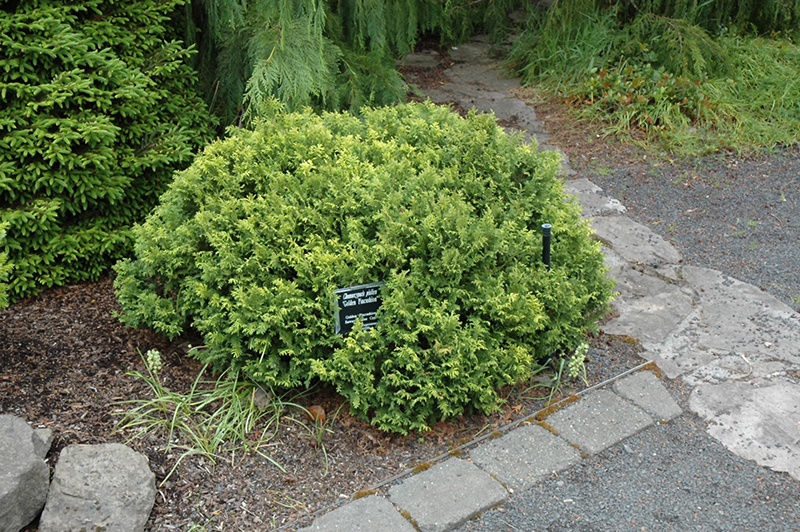 A variety of threadleaf falsecypress with fine, yellow foliage that ages to a light green, giving an extremely fine texture; foliage is brighter yellow in full sun; ideal for color and texture contrast in the garden; grows very slowly