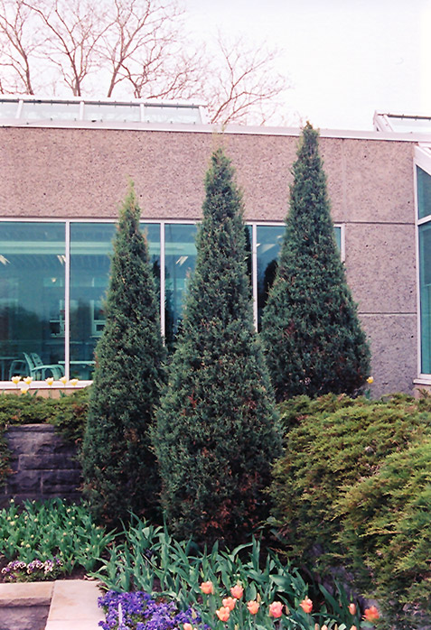 An extremely narrow, rigid tall evergreen shrub, with soft blue-green needle-like foliage all season long; use with caution, can be rather abrupt in the landscape, makes a curious, almost formal tall evergreen hedge when planted in a row